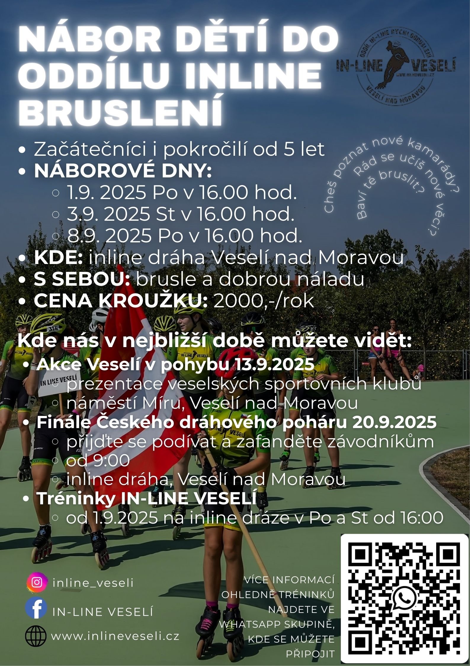 Těšíme se na viděnou s vámi a vašimi dětmi na trénincích IN-LINE VESELÍ